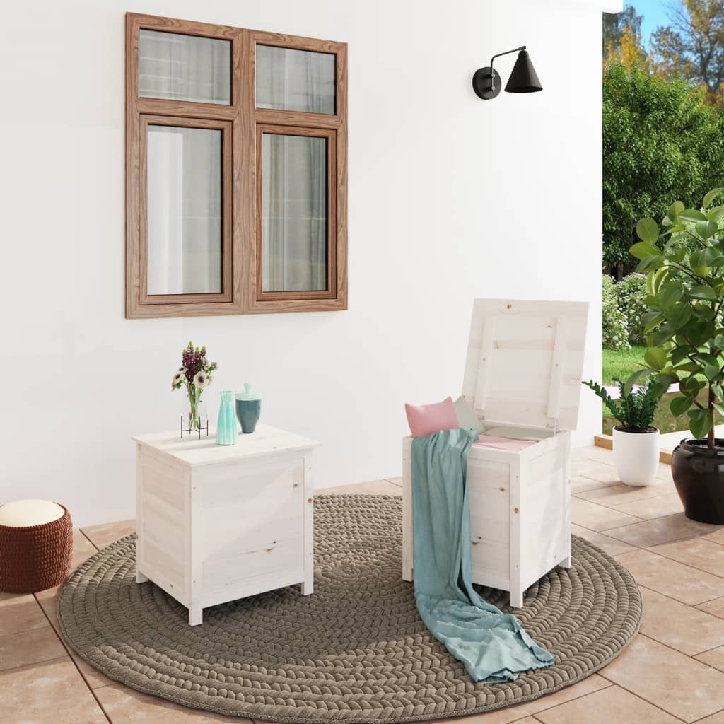 Ogrodowa skrzynia na poduszki, biała, 50x50x56 cm, jodłowa