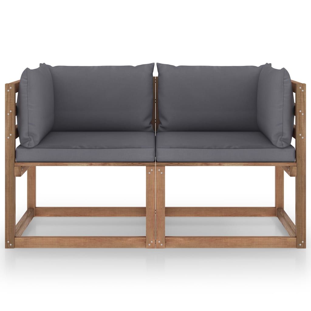 Ogrodowa sofa 2-os. z palet, z antracytowymi poduszkami, sosna