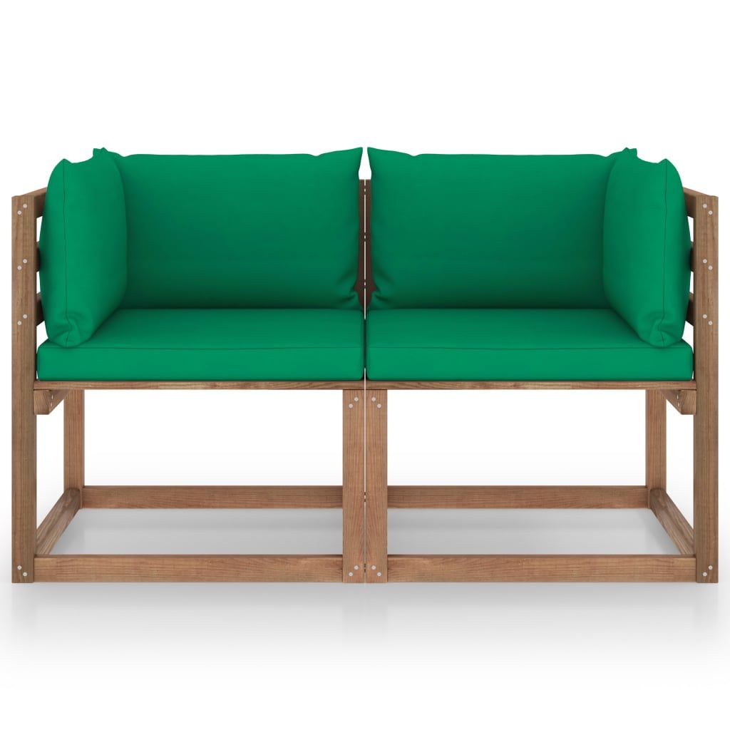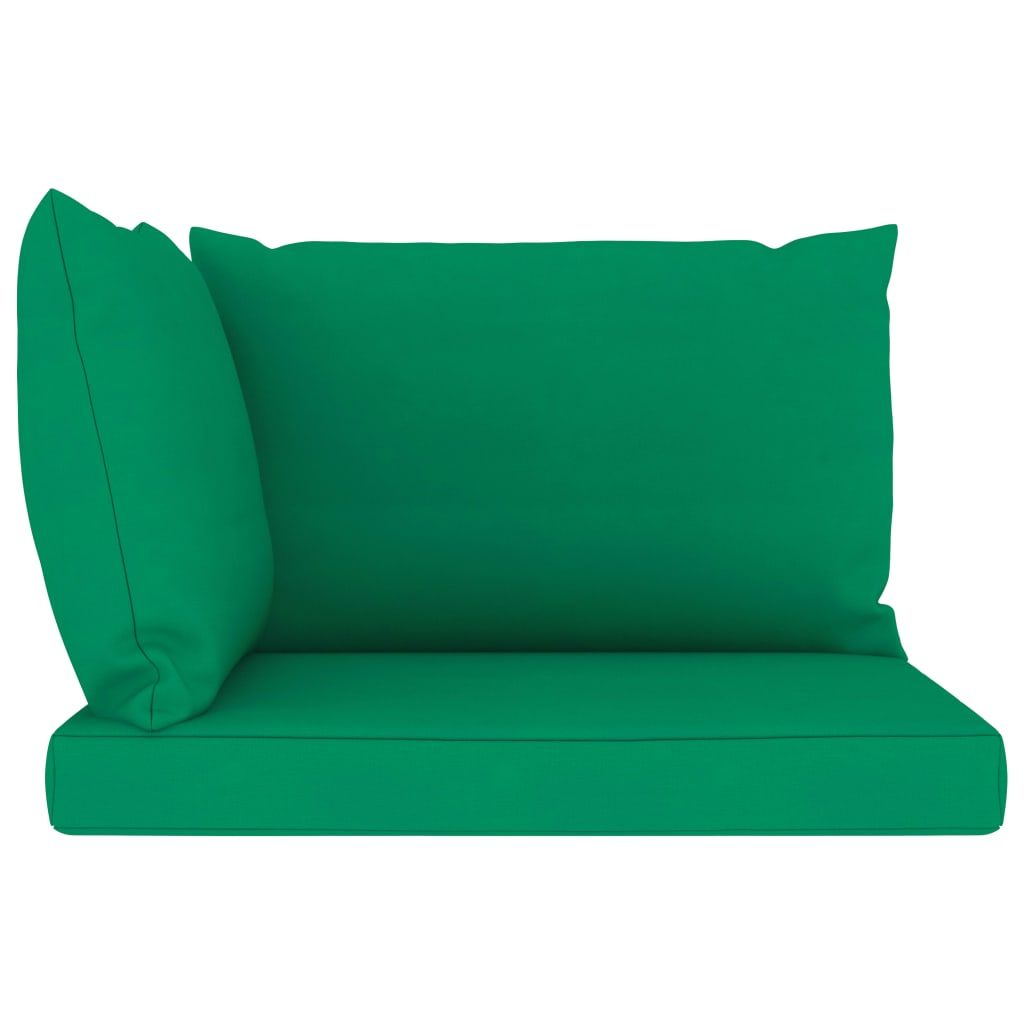 Ogrodowa sofa 2-os. z palet, z zielonymi poduszkami, sosna