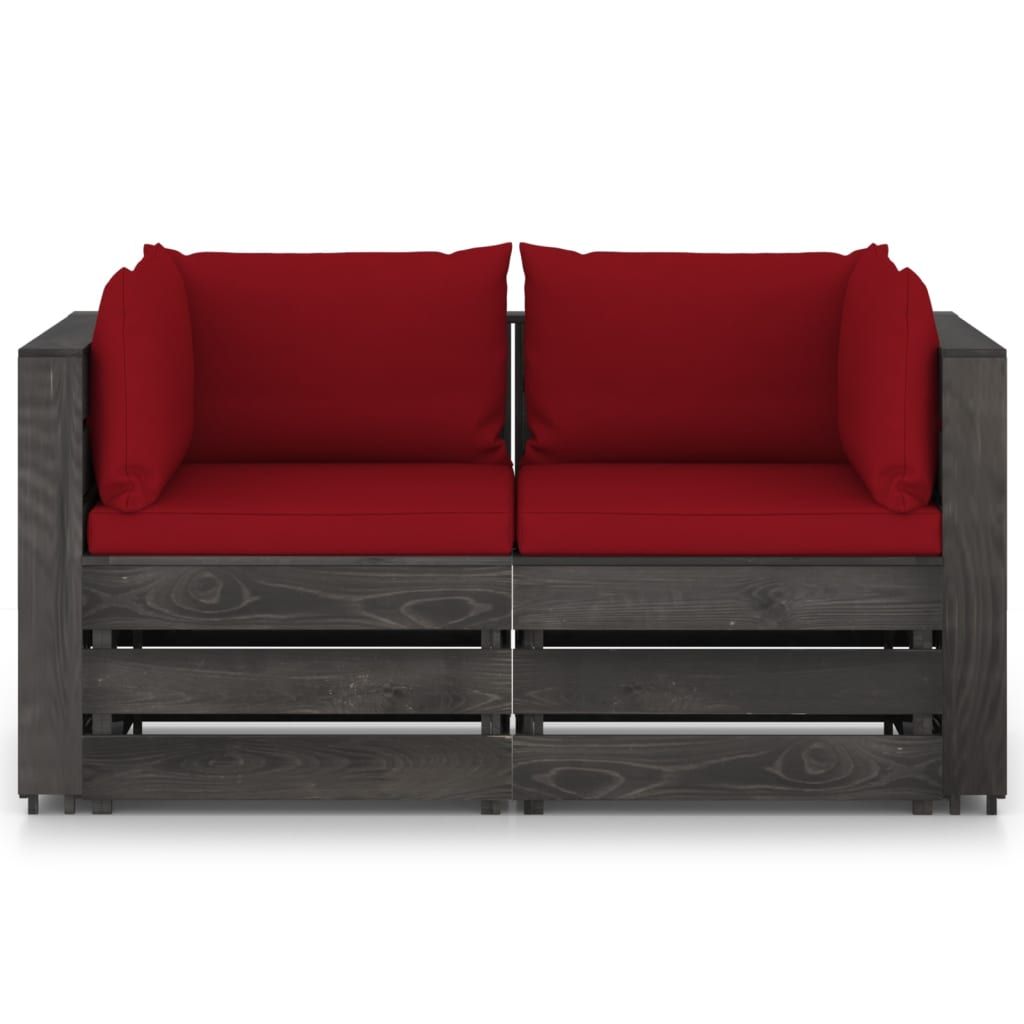 Ogrodowa sofa 2-os z poduszkami, impregnowane na szaro drewno