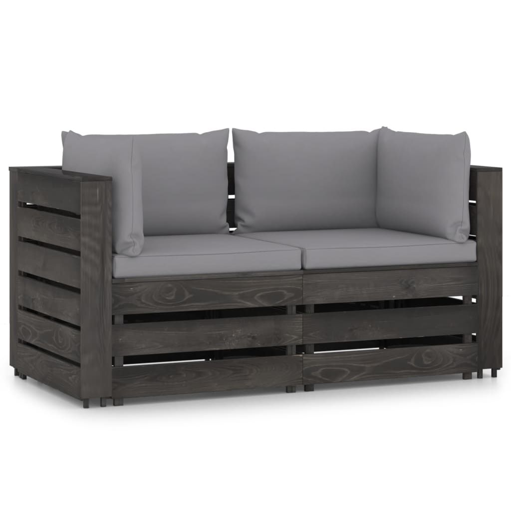 Ogrodowa sofa 2-os z poduszkami, impregnowane na szaro drewno