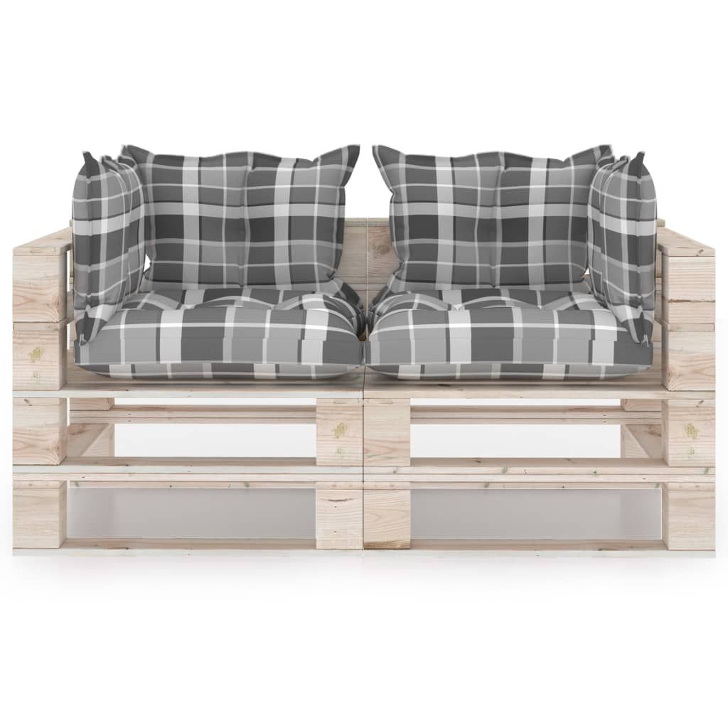 Ogrodowa sofa 2-osobowa z palet, poduszki, drewno sosnowe