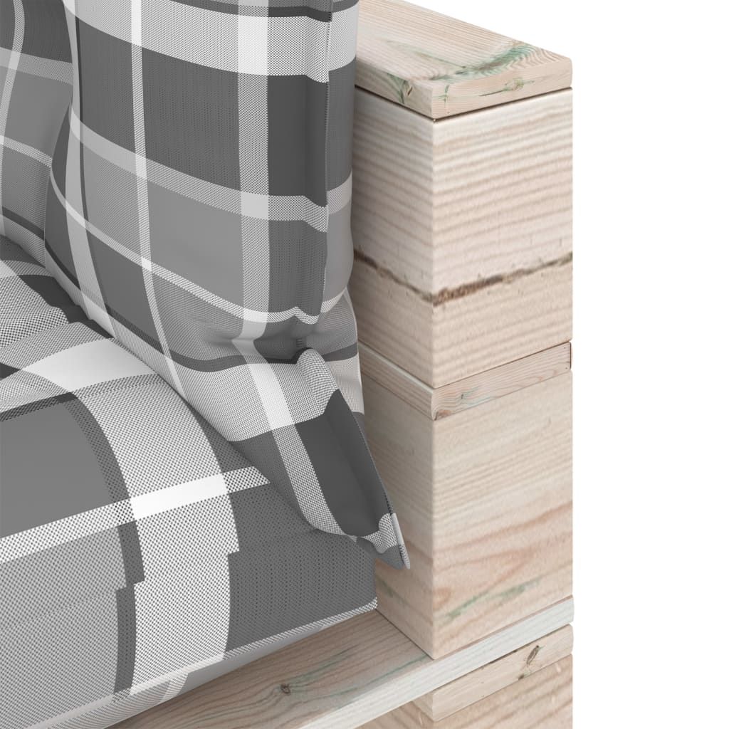 Opis produktu: Ta modna, dwuosobowa sofa ogrodowa z palet stworzy wygodną, relaksującą przestrzeń na patio, w ogródku lub salonie. Sofę ogrodową wykonano z palet z drewna sosnowego, dzięki czemu pozostaje trwała, odporna na warunki atmosferyczne i przyjazna dla środowiska. Ma solidną konstrukcję i nie wymaga zbyt wiele konserwacji. Dostarczana wraz z poduszkami sofa zapewnia najwyższy komfort Tobie i Twoim gościom. Możesz na niej cieszyć się słońcem, zdrzemnąć się lub porozmawiać. Prosimy mieć na uwadze, że drewno jest materiałem naturalnym i może wykazywać pewne niedoskonałości.