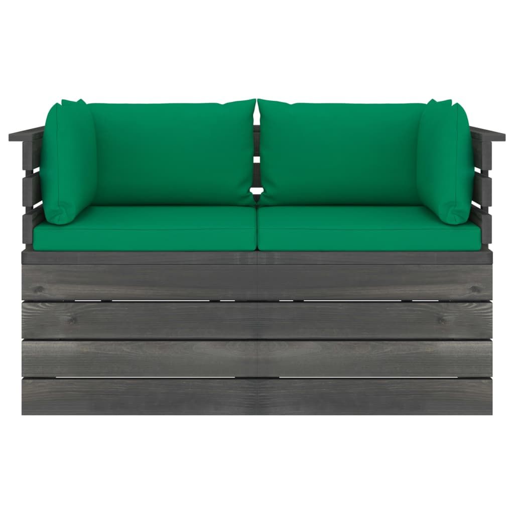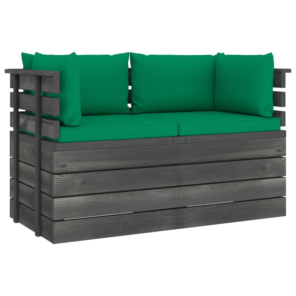 Ogrodowa sofa 2-osobowa z palet, z poduszkami, drewno sosnowe