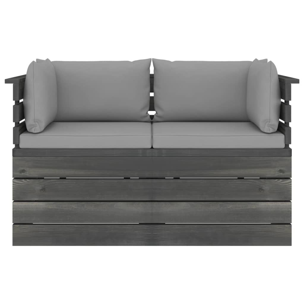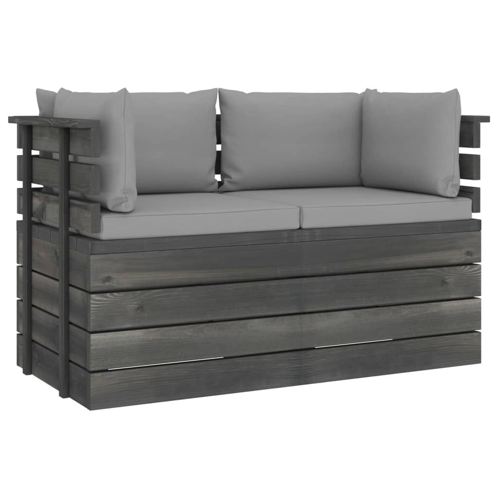 Ogrodowa sofa 2-osobowa z palet, z poduszkami, drewno sosnowe