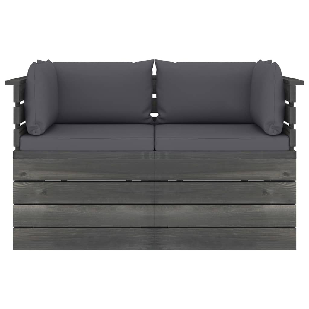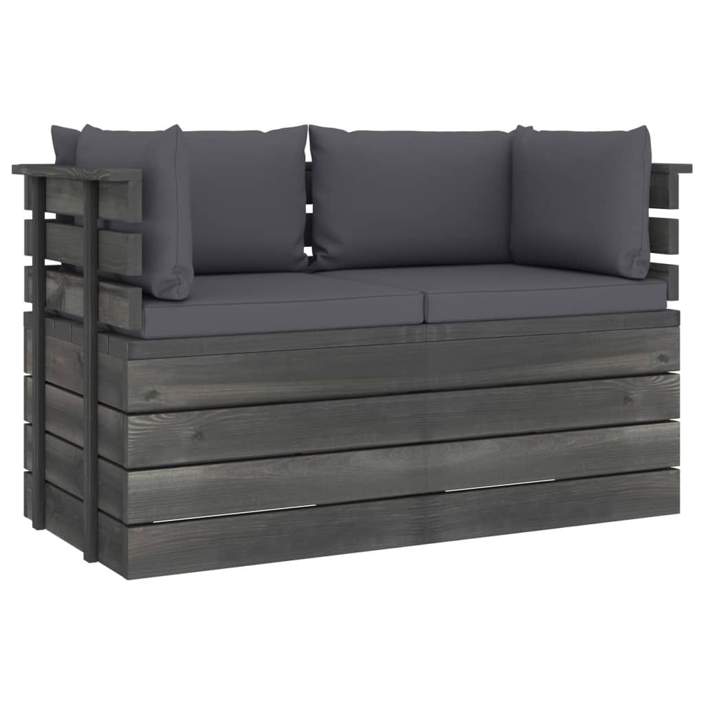 Ogrodowa sofa 2-osobowa z palet, z poduszkami, drewno sosnowe