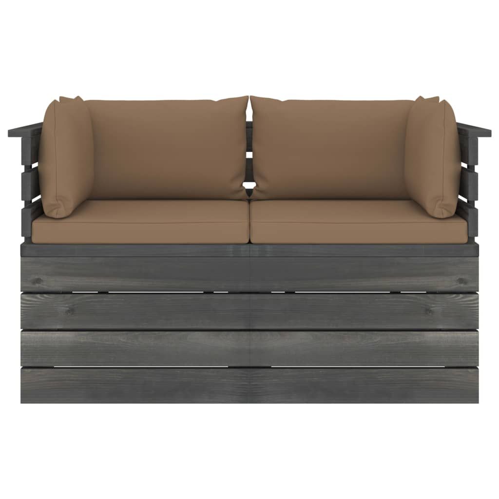 Ogrodowa sofa 2-osobowa z palet, z poduszkami, drewno sosnowe