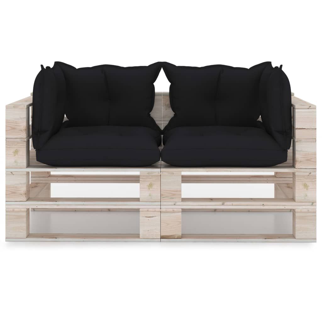 Ogrodowa sofa 2-osobowa z palet, z poduszkami, drewno sosnowe