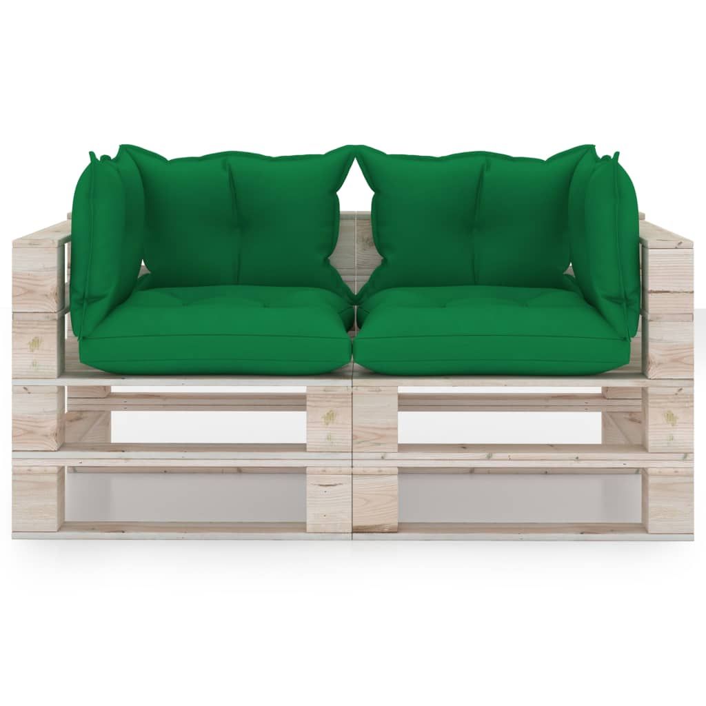 Ogrodowa sofa 2-osobowa z palet, z poduszkami, drewno sosnowe