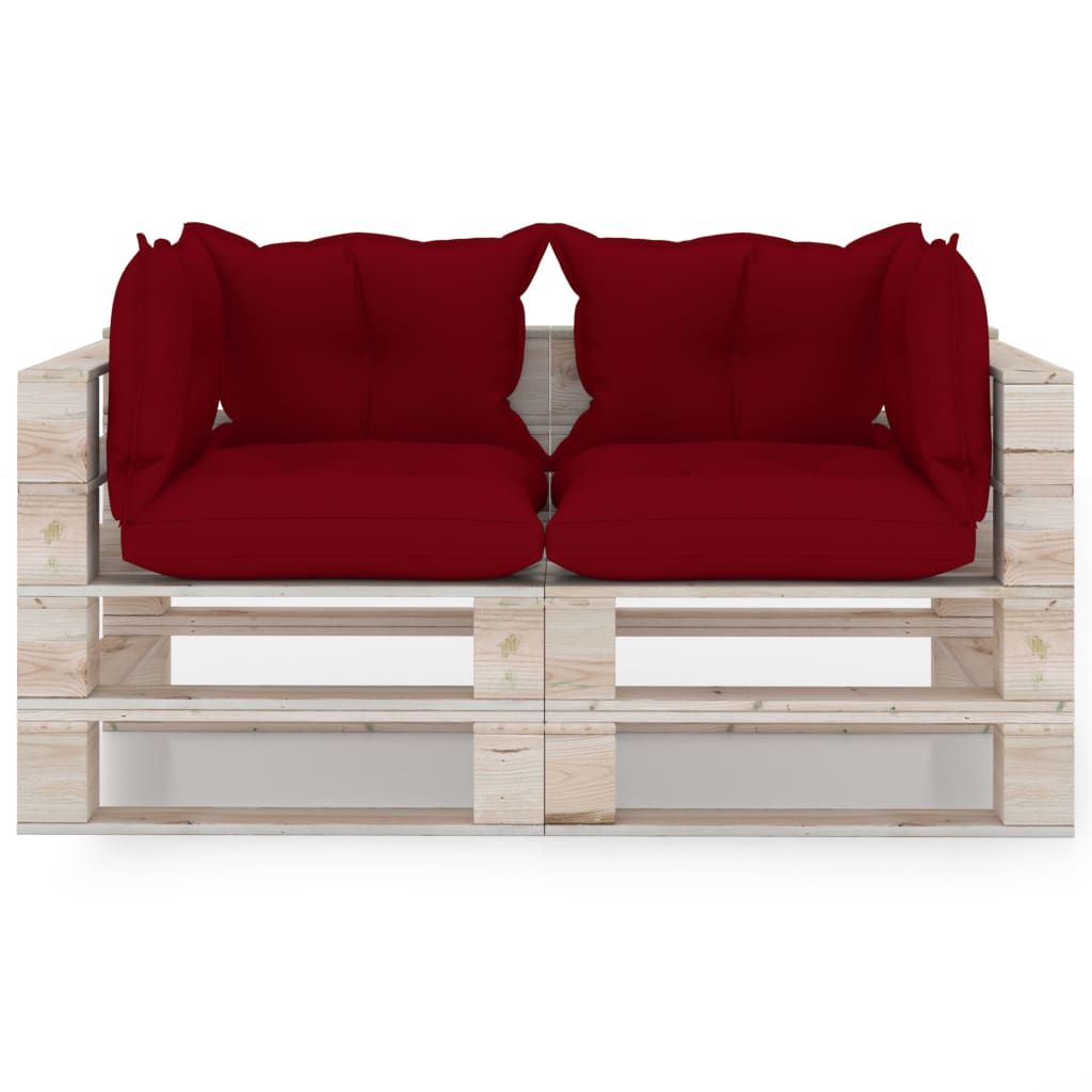Ogrodowa sofa 2-osobowa z palet, z poduszkami, drewno sosnowe