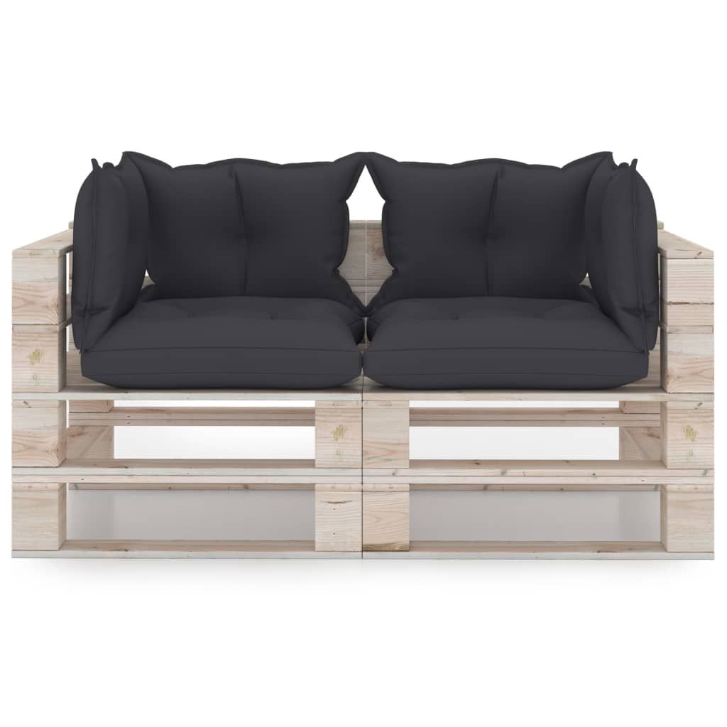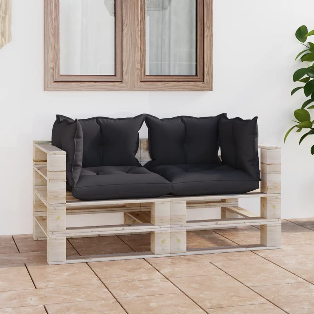 Ogrodowa sofa 2-osobowa z palet, z poduszkami, drewno sosnowe