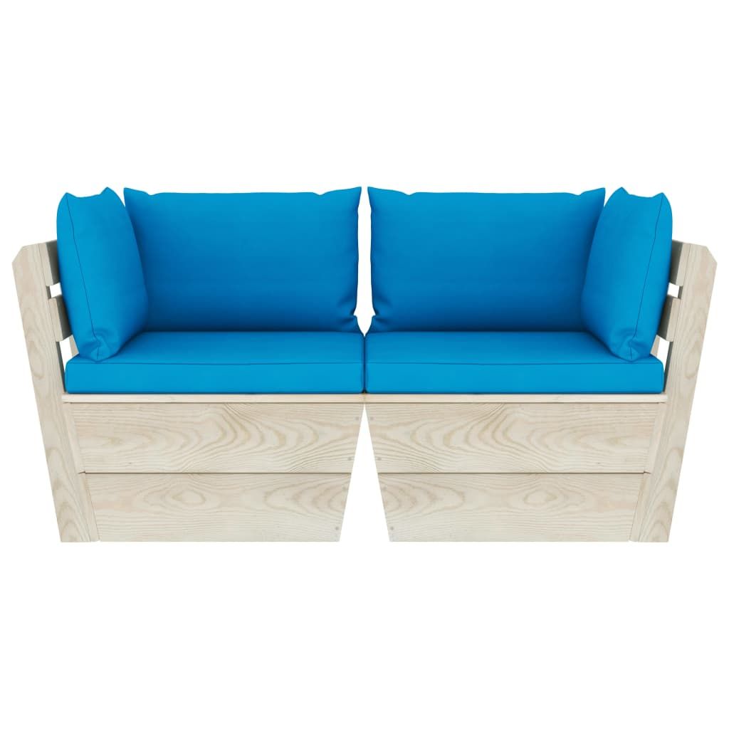 Ogrodowa sofa 2-osobowa z palet, z poduszkami, drewno świerkowe