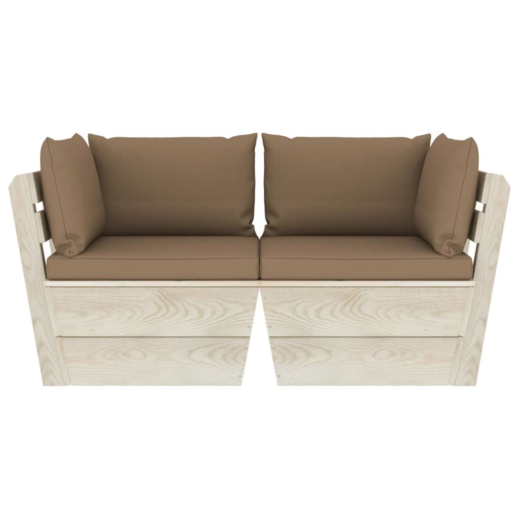 Ogrodowa sofa 2-osobowa z palet, z poduszkami, drewno świerkowe