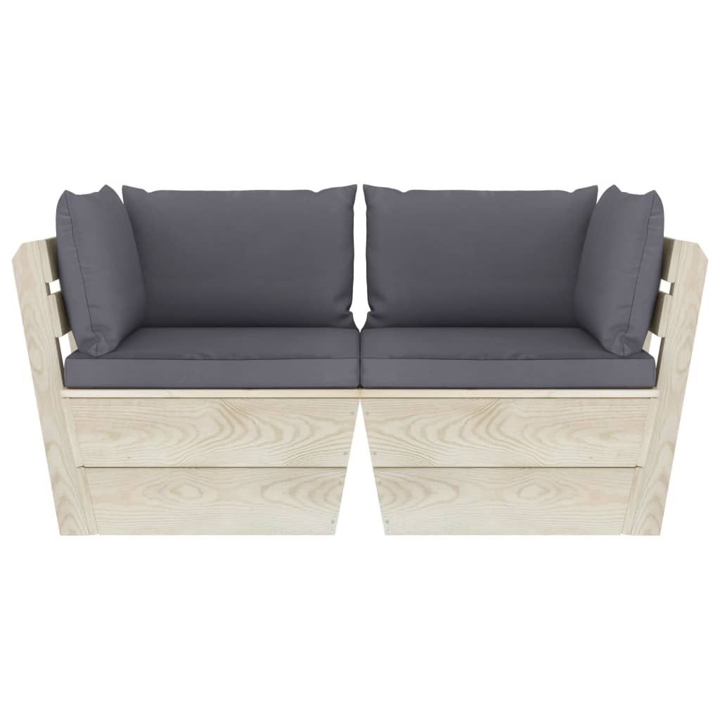 Ogrodowa sofa 2-osobowa z palet, z poduszkami, drewno świerkowe