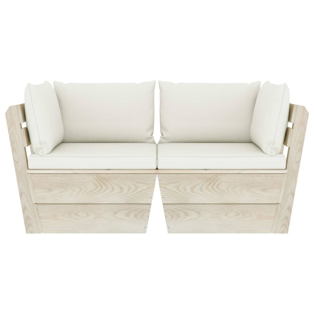 Ogrodowa sofa 2-osobowa z palet, z poduszkami, drewno świerkowe