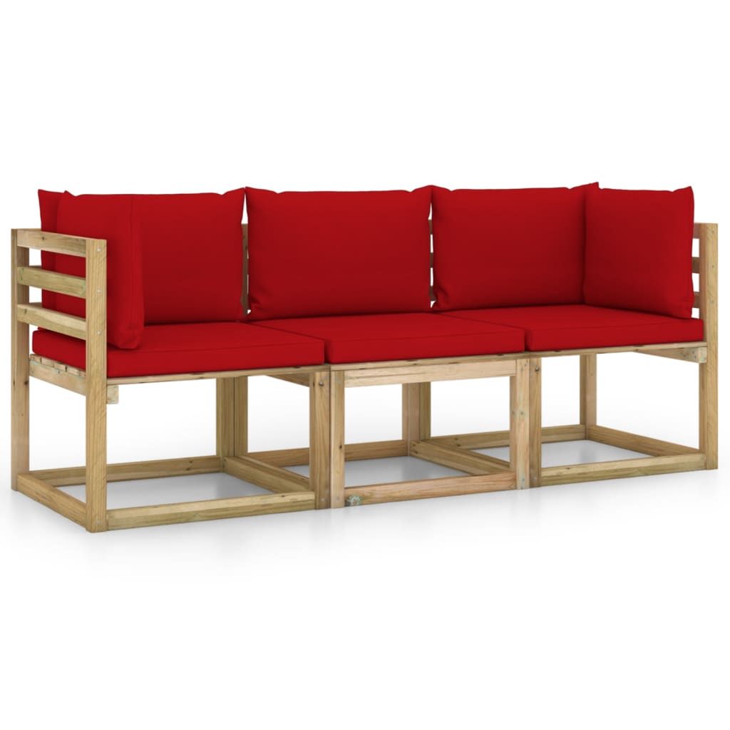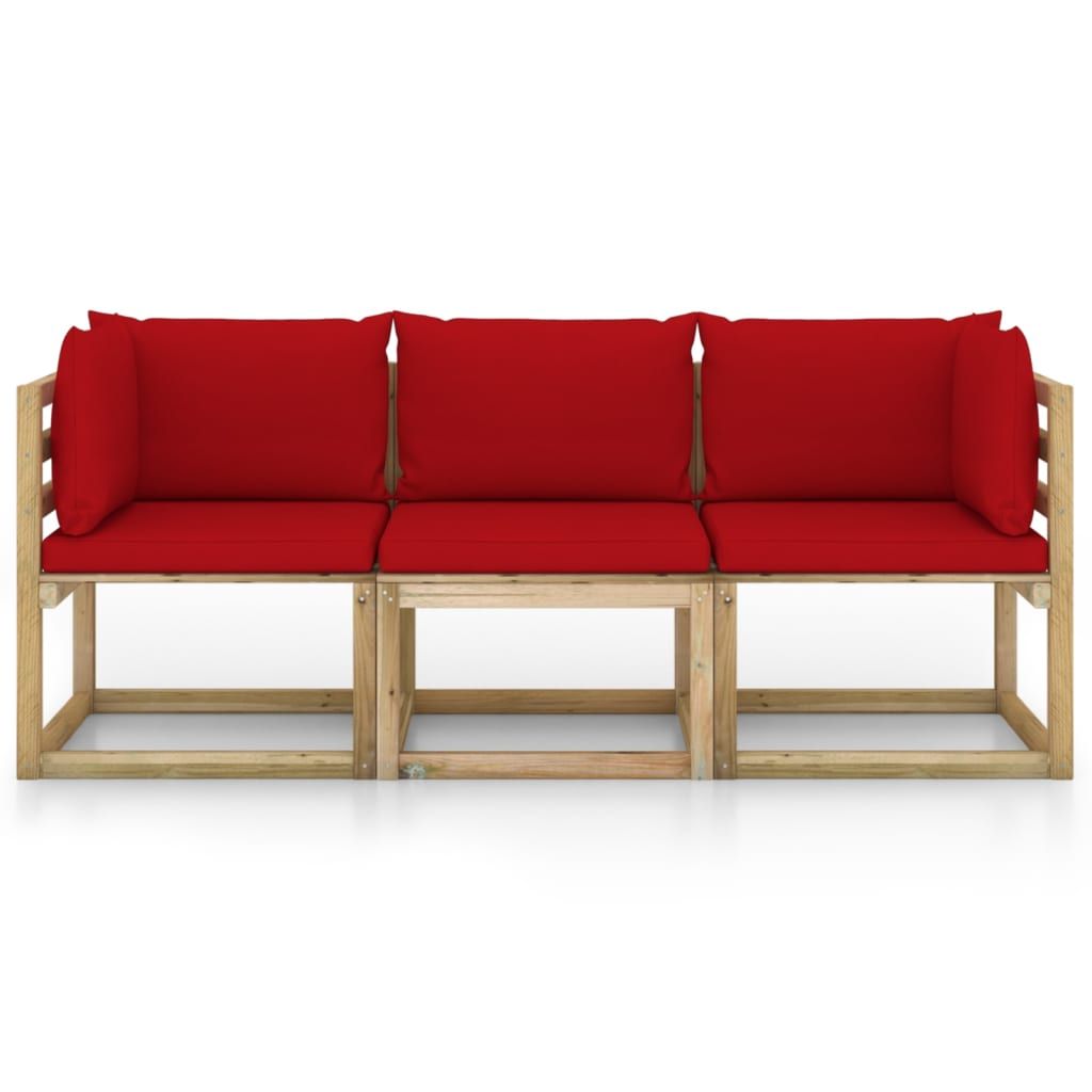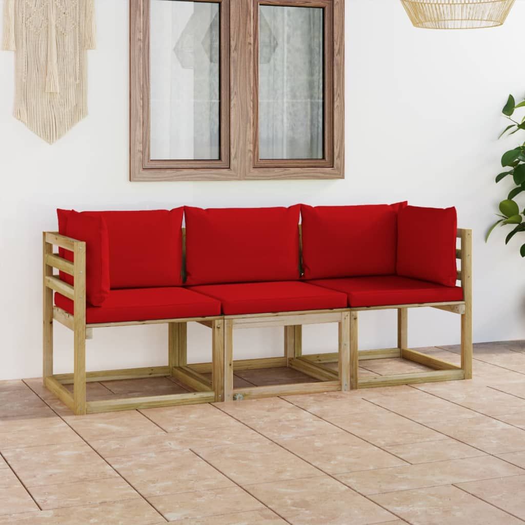 Ogrodowa sofa 3-os. z czerwonymi poduszkami