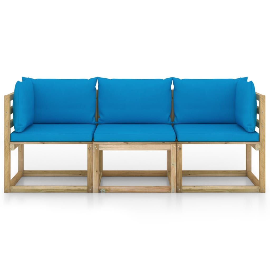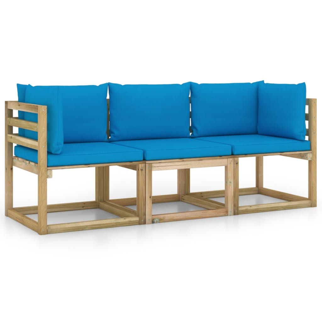 Ogrodowa sofa 3-os. z jasnoniebieskimi poduszkami