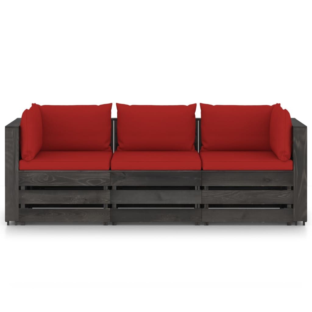 Ogrodowa sofa 3-os z poduszkami, impregnowane na szaro drewno