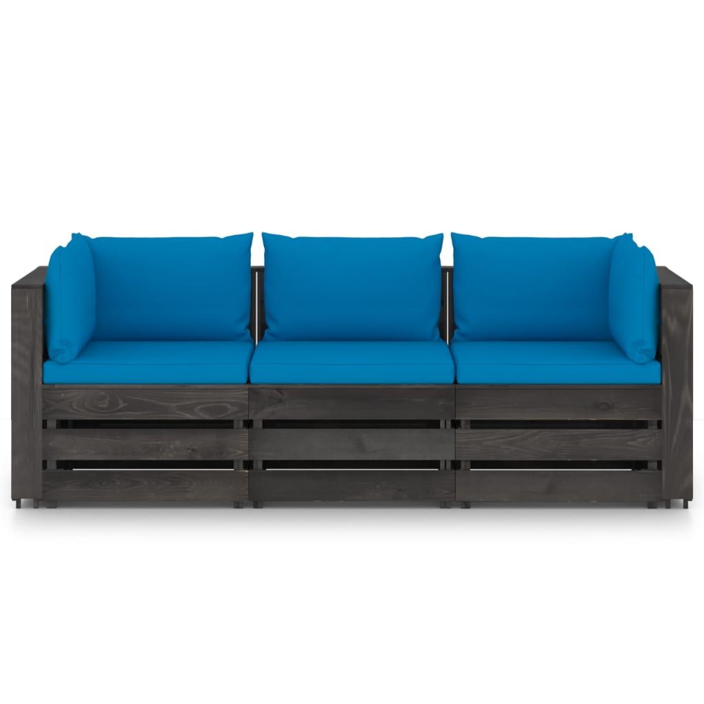 Ogrodowa sofa 3-os z poduszkami, impregnowane na szaro drewno