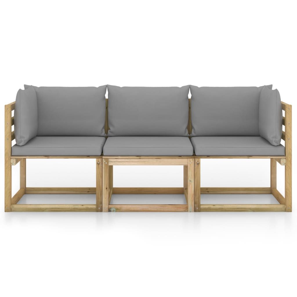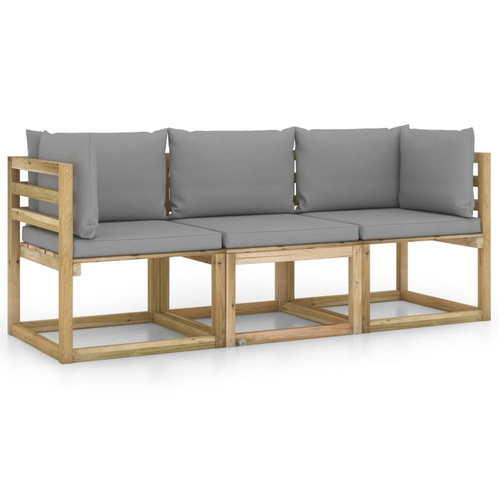 Ogrodowa sofa 3-os. z szarymi poduszkami