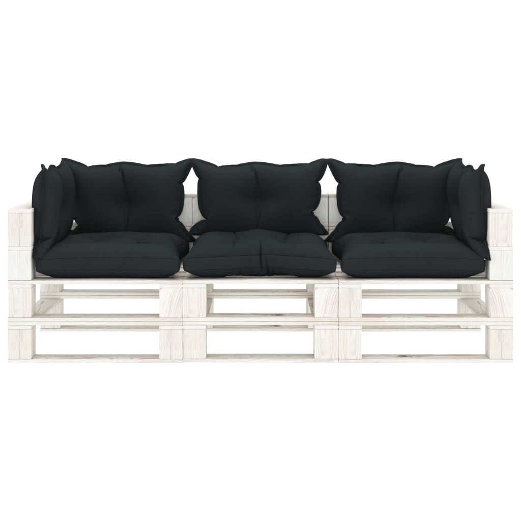 Ogrodowa sofa 3-osobowa z palet, antracytowe poduszki, drewno