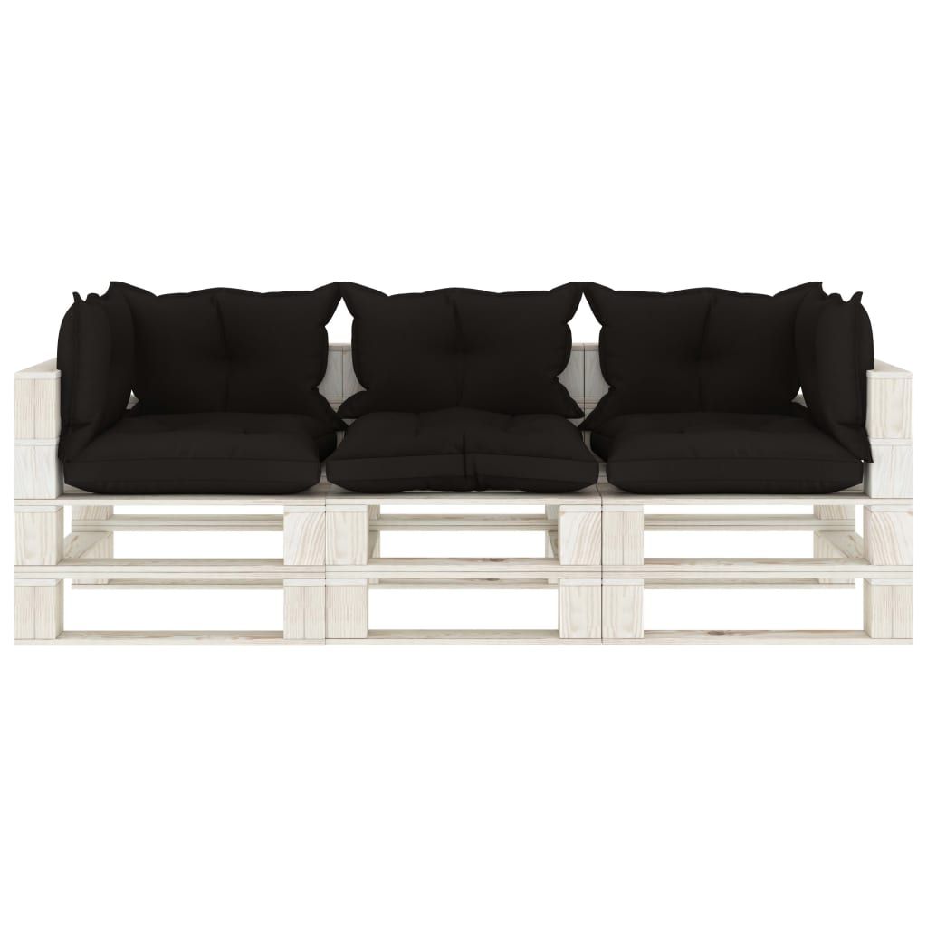 Ogrodowa sofa 3-osobowa z palet, z czarnymi poduszkami, drewno