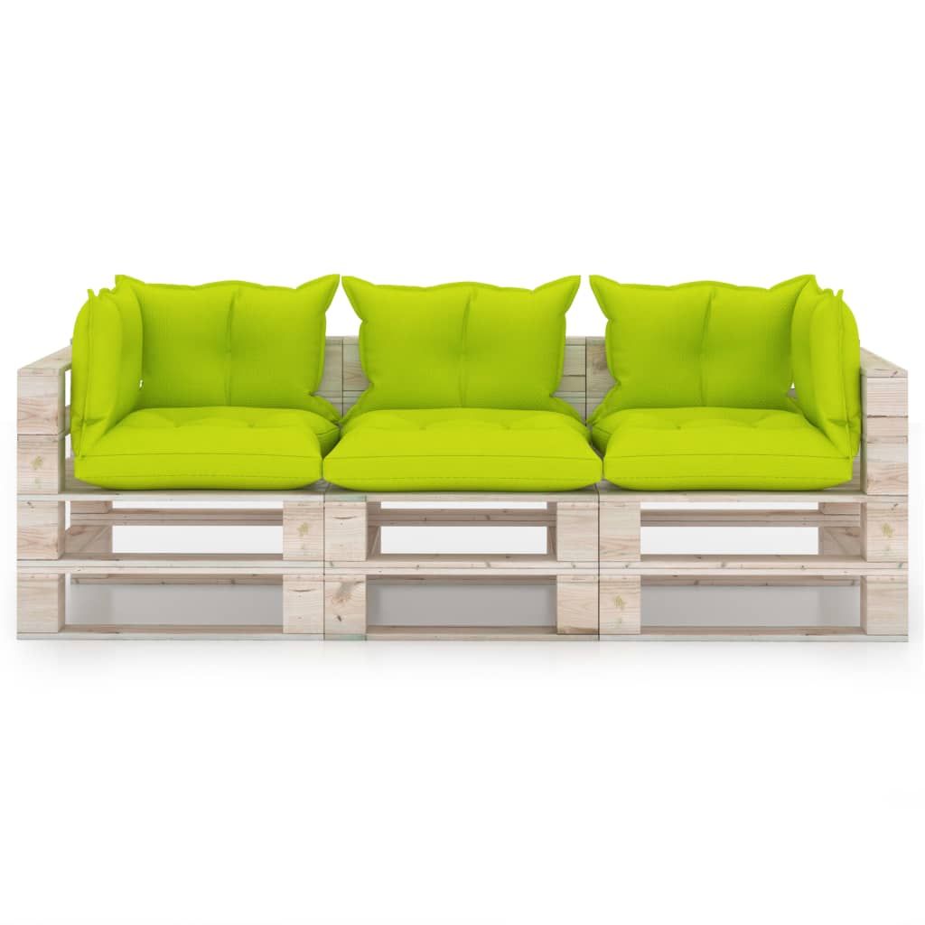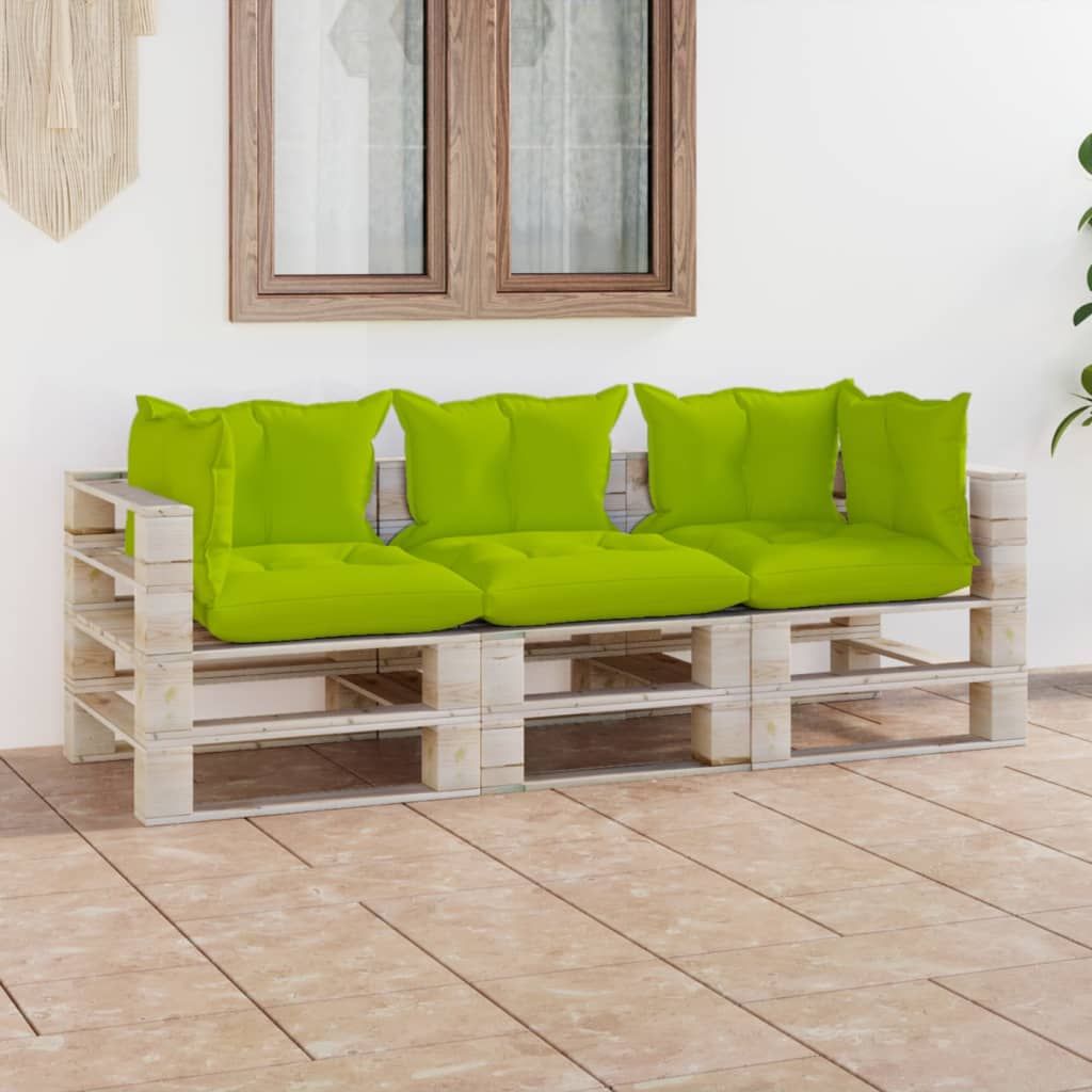 Ogrodowa sofa 3-osobowa z palet, z poduszkami, drewno sosnowe
