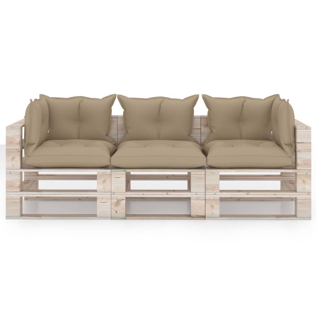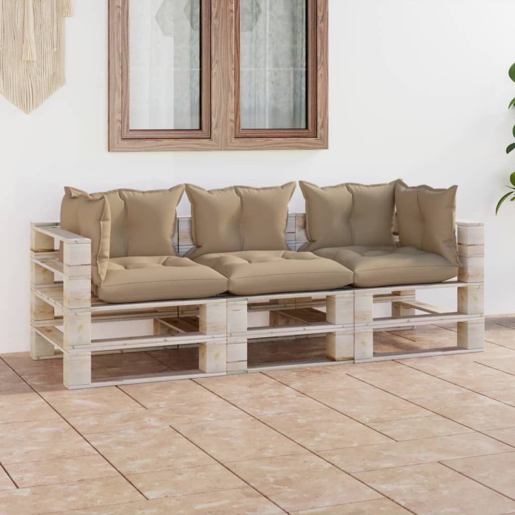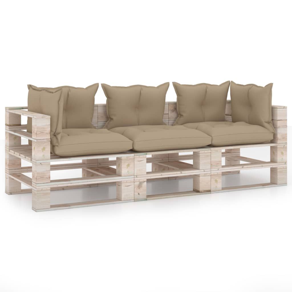 Ogrodowa sofa 3-osobowa z palet, z poduszkami, drewno sosnowe