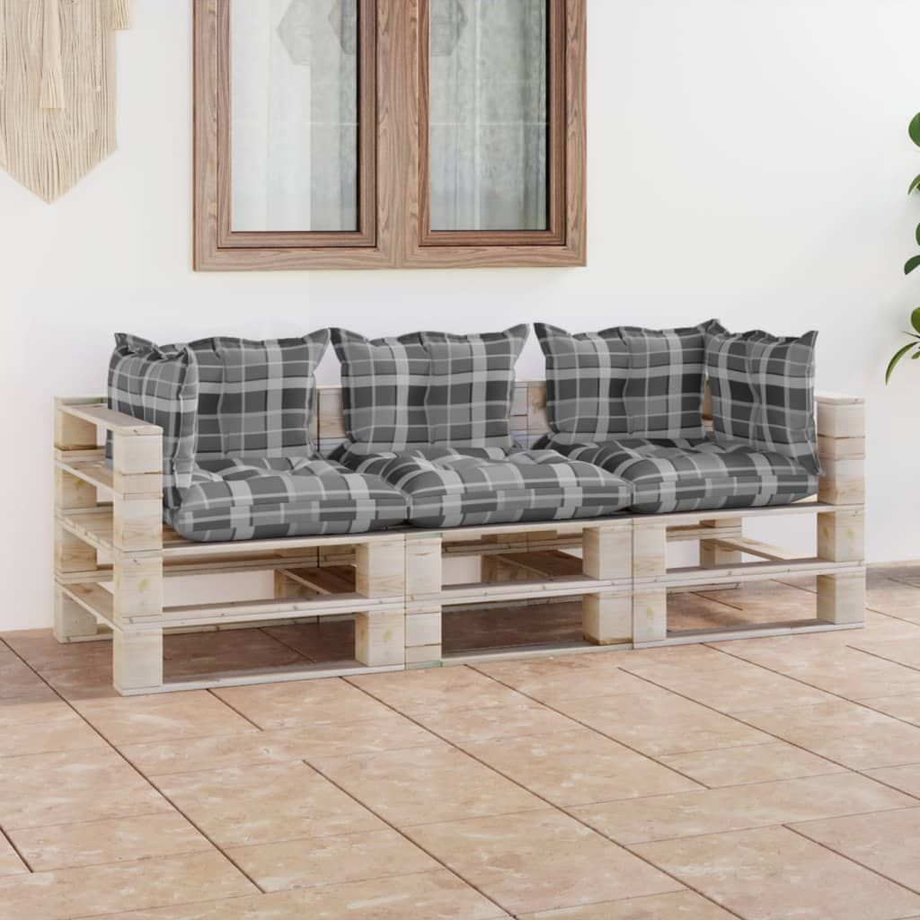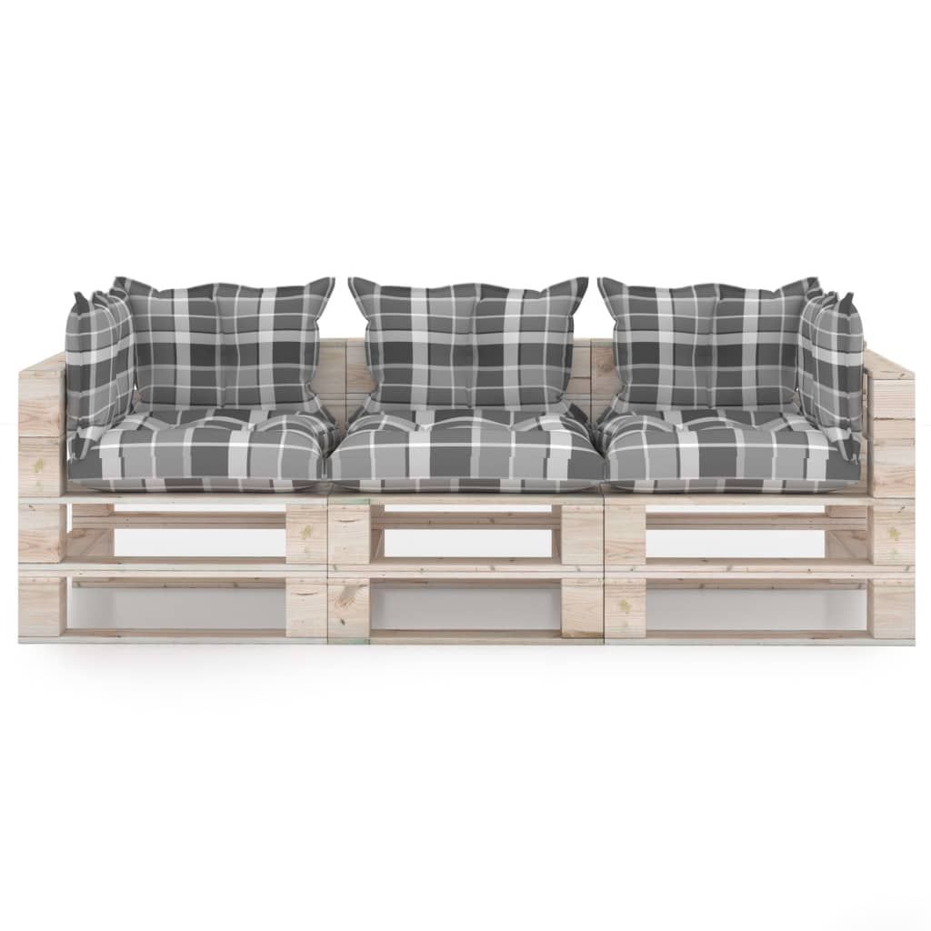 Ogrodowa sofa 3-osobowa z palet, z poduszkami, drewno sosnowe