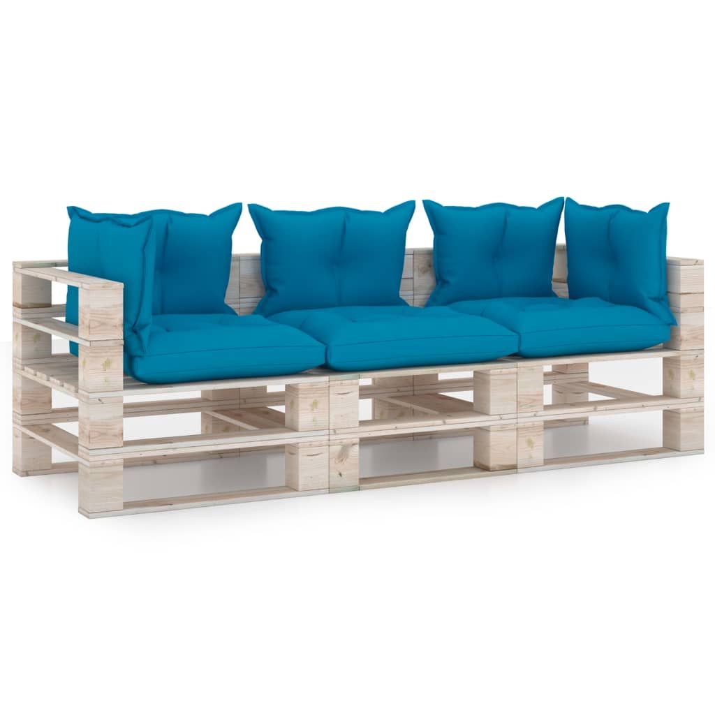 Ogrodowa sofa 3-osobowa z palet, z poduszkami, drewno sosnowe