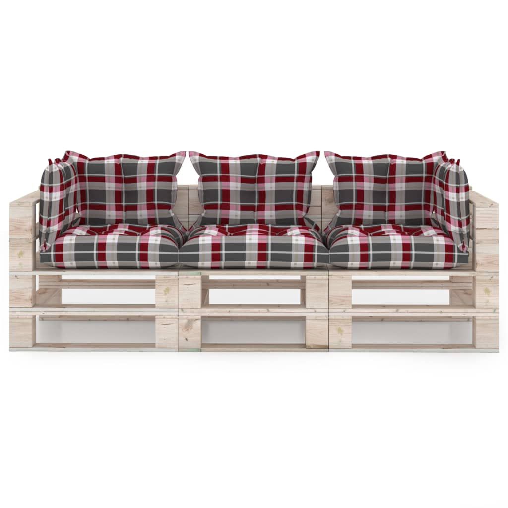 Ogrodowa sofa 3-osobowa z palet, z poduszkami, drewno sosnowe