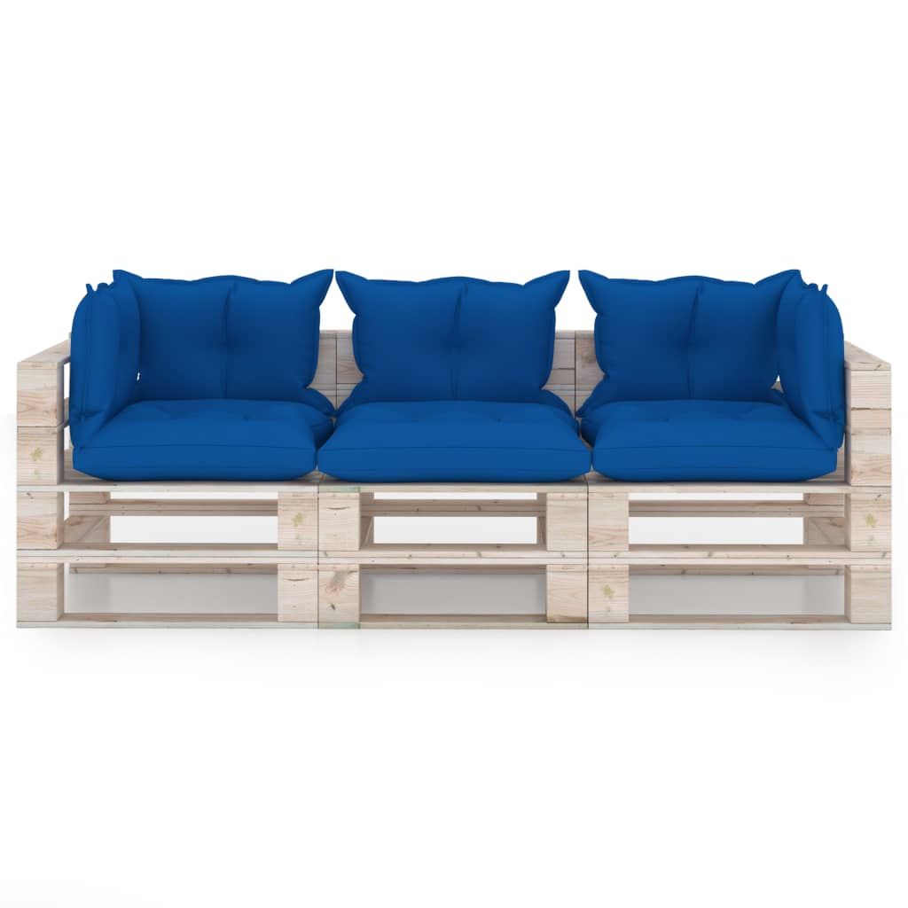Ogrodowa sofa 3-osobowa z palet, z poduszkami, drewno sosnowe