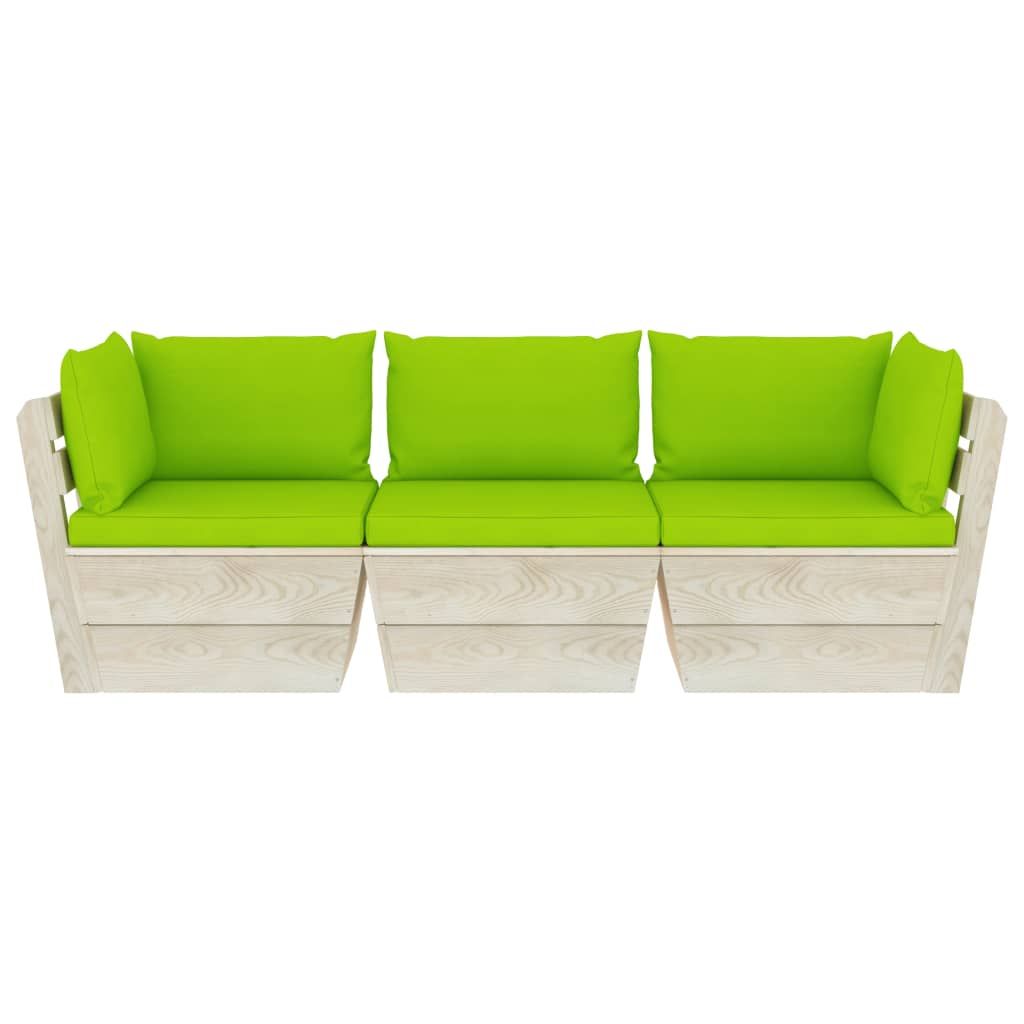 Ogrodowa sofa 3-osobowa z palet, z poduszkami, drewno świerkowe