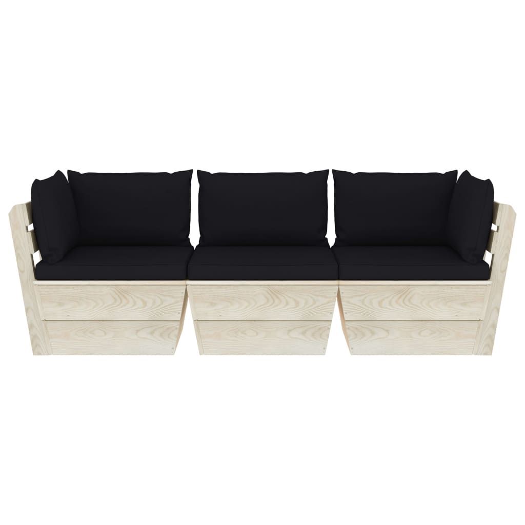 Ogrodowa sofa 3-osobowa z palet, z poduszkami, drewno świerkowe