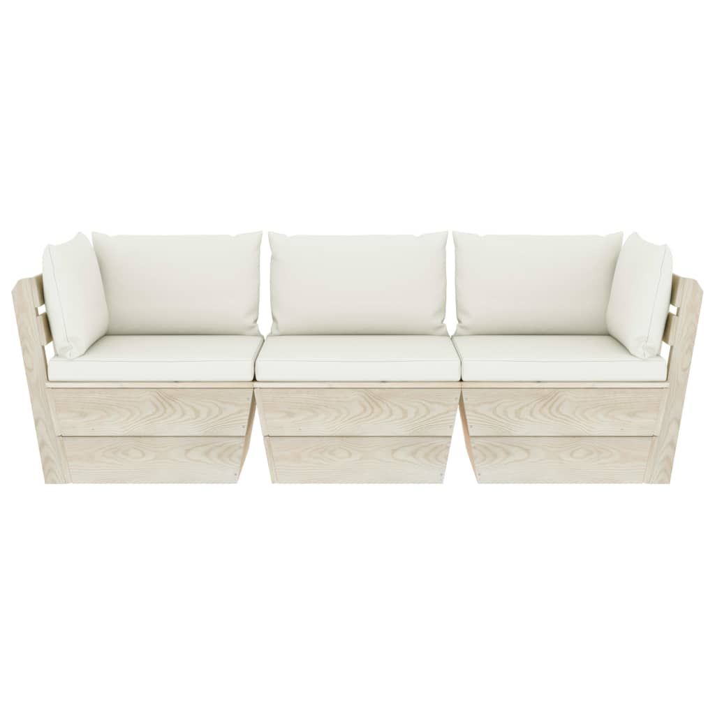 Ogrodowa sofa 3-osobowa z palet, z poduszkami, drewno świerkowe