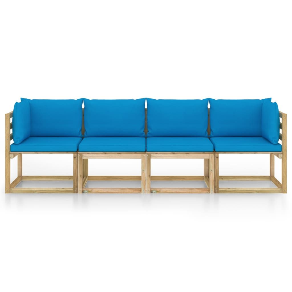 Ogrodowa sofa 4-os. z jasnoniebieskimi poduszkami