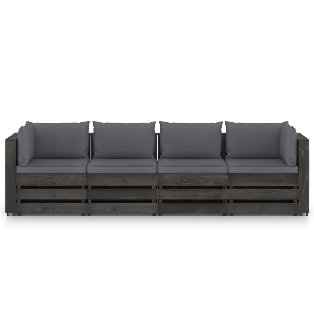 Ogrodowa sofa 4-os. z poduszkami, impregnowane na szaro drewno