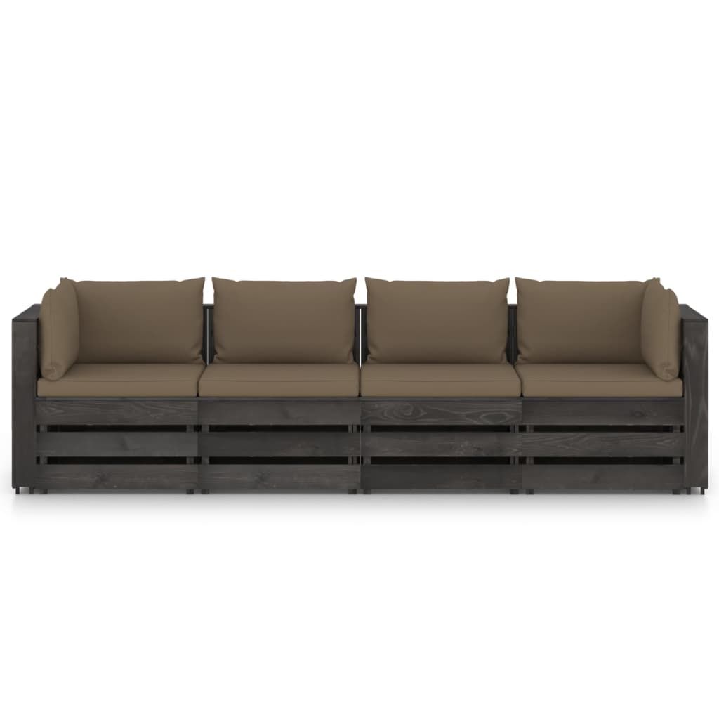 Ogrodowa sofa 4-os z poduszkami, impregnowane na szaro drewno