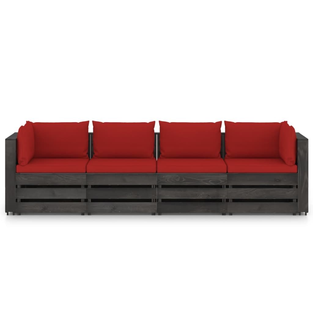 Ogrodowa sofa 4-os z poduszkami, impregnowane na szaro drewno