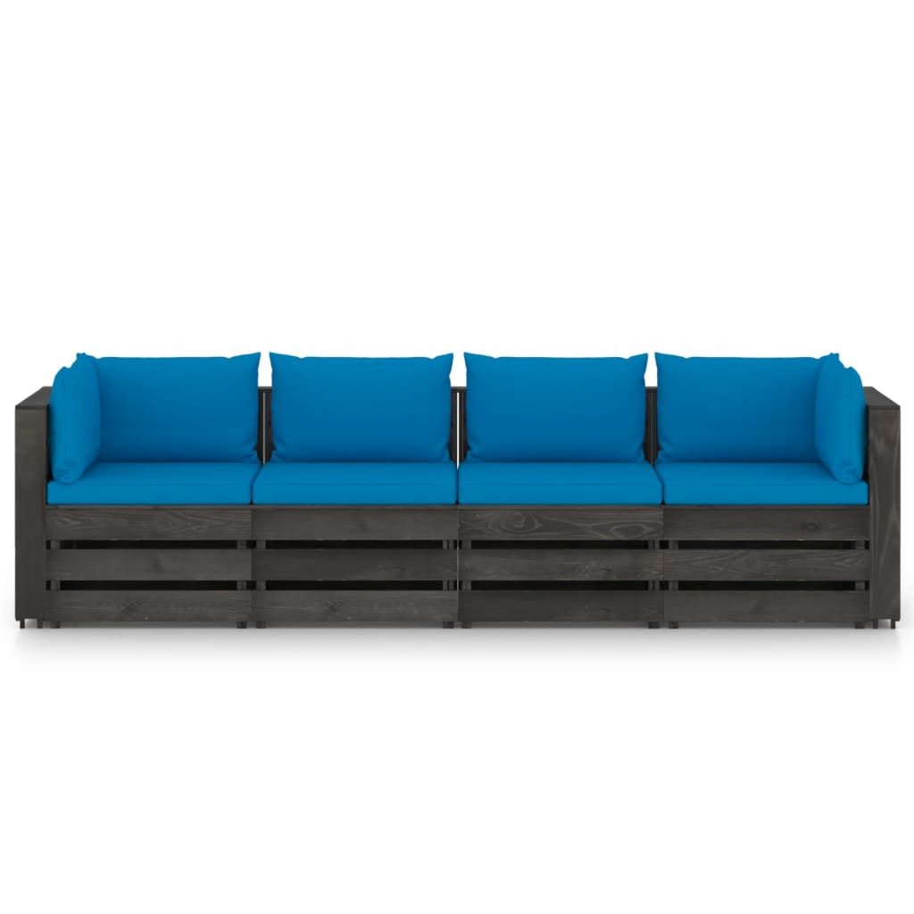 Ogrodowa sofa 4-os. z poduszkami, impregnowane na szaro drewno