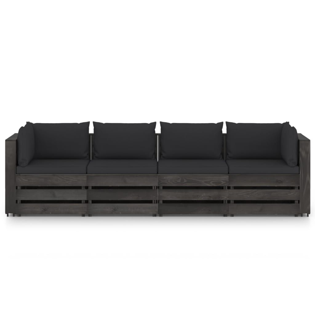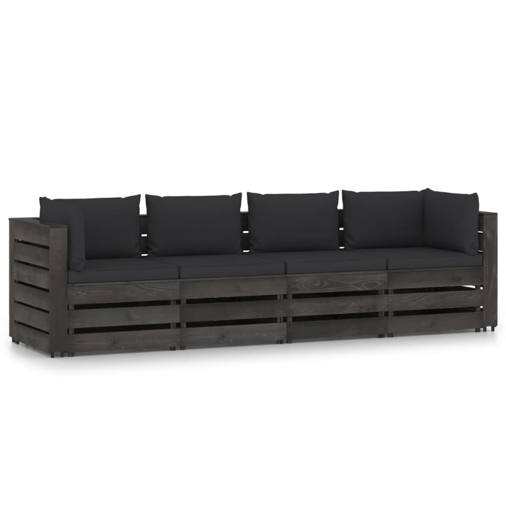 Ogrodowa sofa 4-os. z poduszkami, impregnowane na szaro drewno