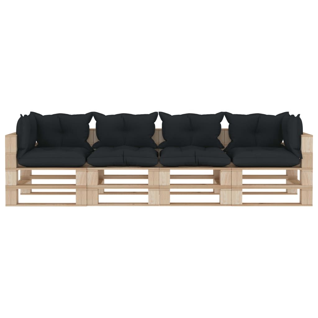 Ogrodowa sofa 4-osobowa z palet, antracytowe poduszki, drewno