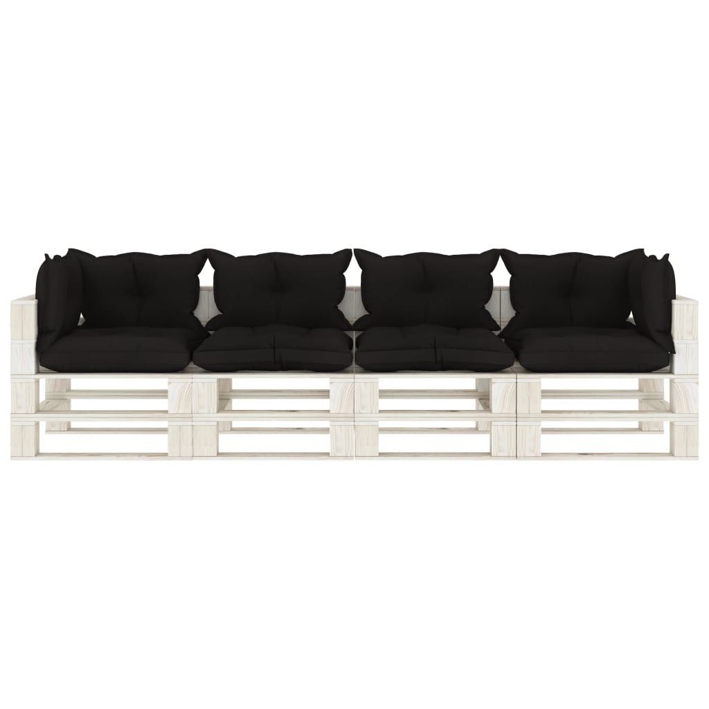 Ogrodowa sofa 4-osobowa z palet, z czarnymi poduszkami, drewno