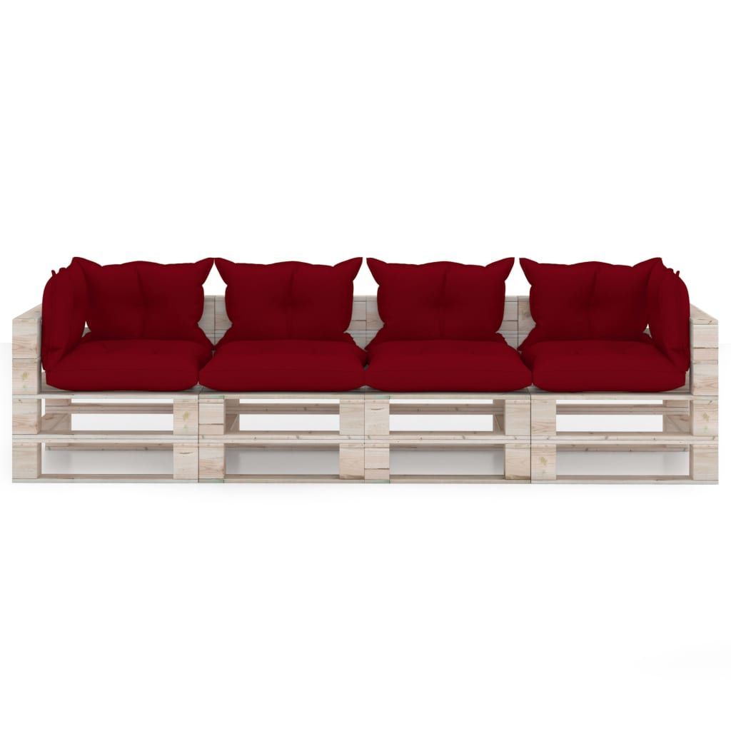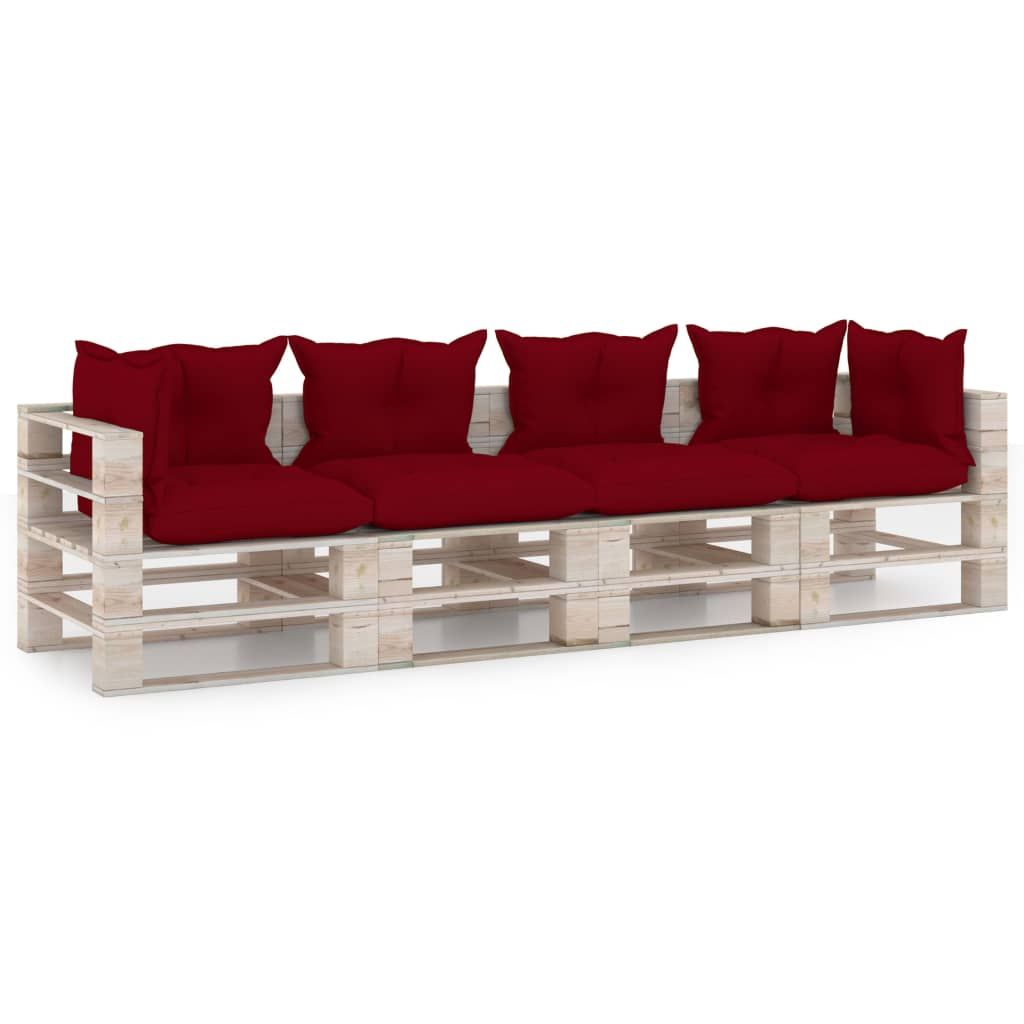 Ogrodowa sofa 4-osobowa z palet, z poduszkami, drewno sosnowe