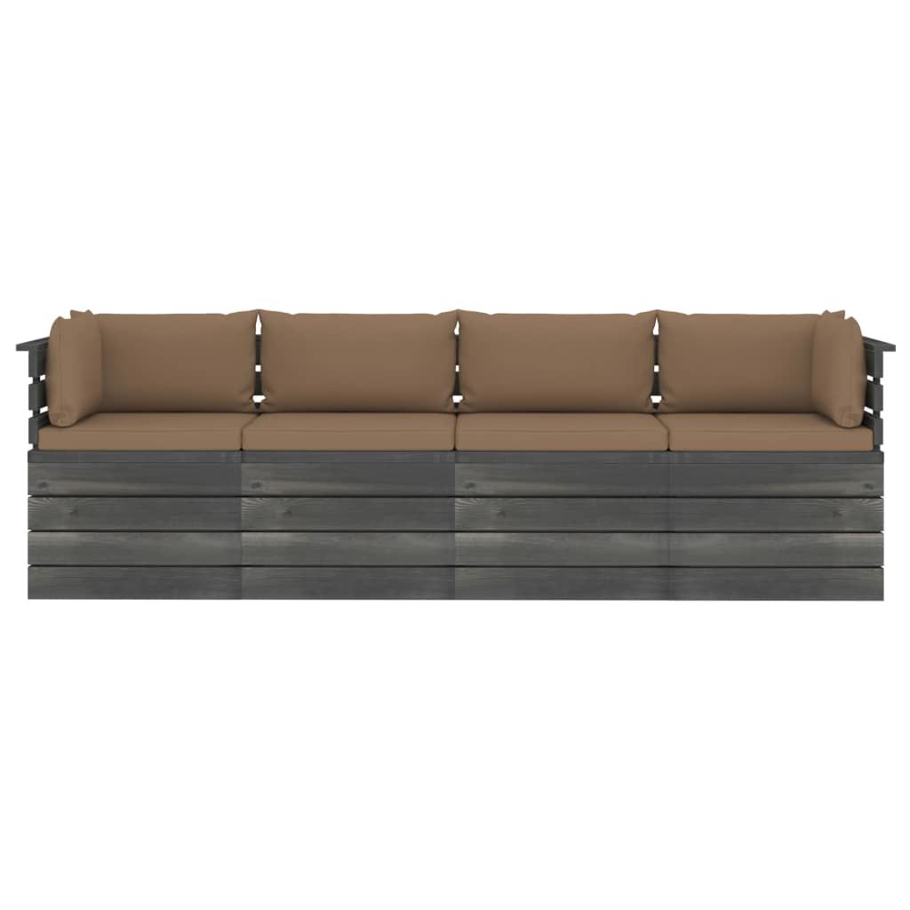 Ogrodowa sofa 4-osobowa z palet, z poduszkami, drewno sosnowe