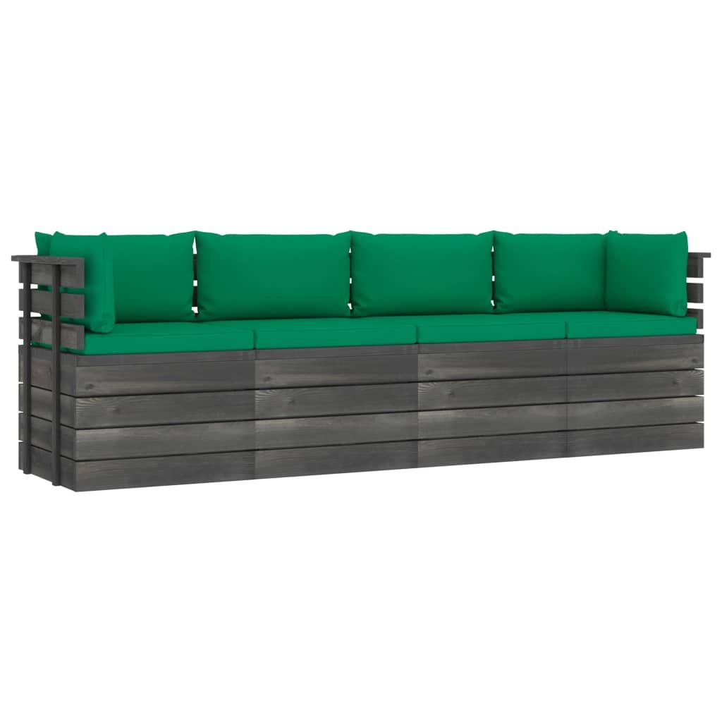 Ogrodowa sofa 4-osobowa z palet, z poduszkami, drewno sosnowe