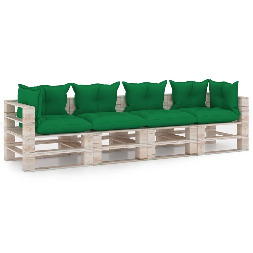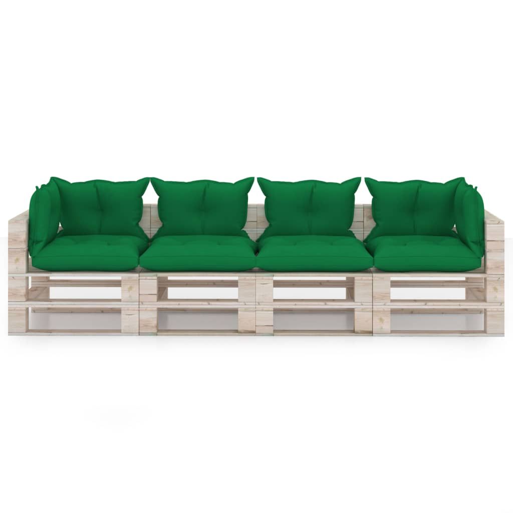Ogrodowa sofa 4-osobowa z palet, z poduszkami, drewno sosnowe