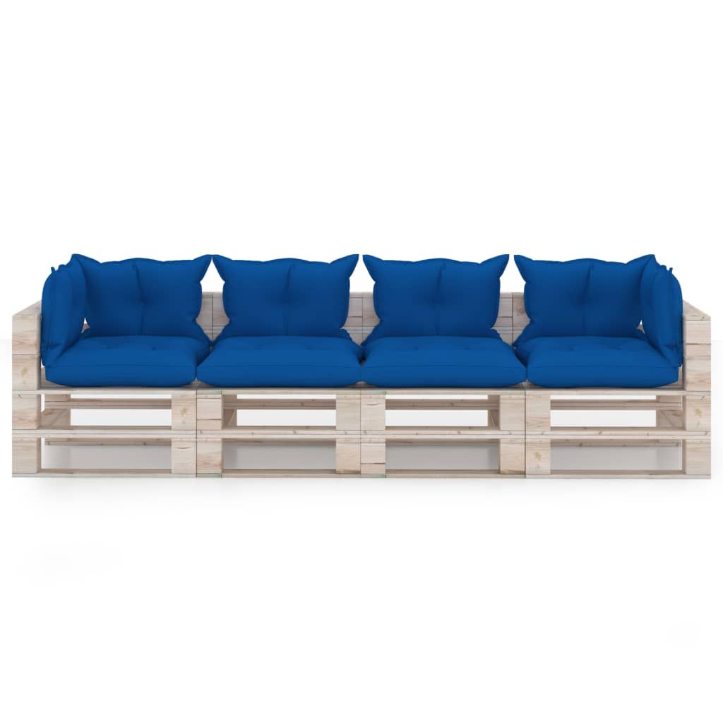 Ogrodowa sofa 4-osobowa z palet, z poduszkami, drewno sosnowe