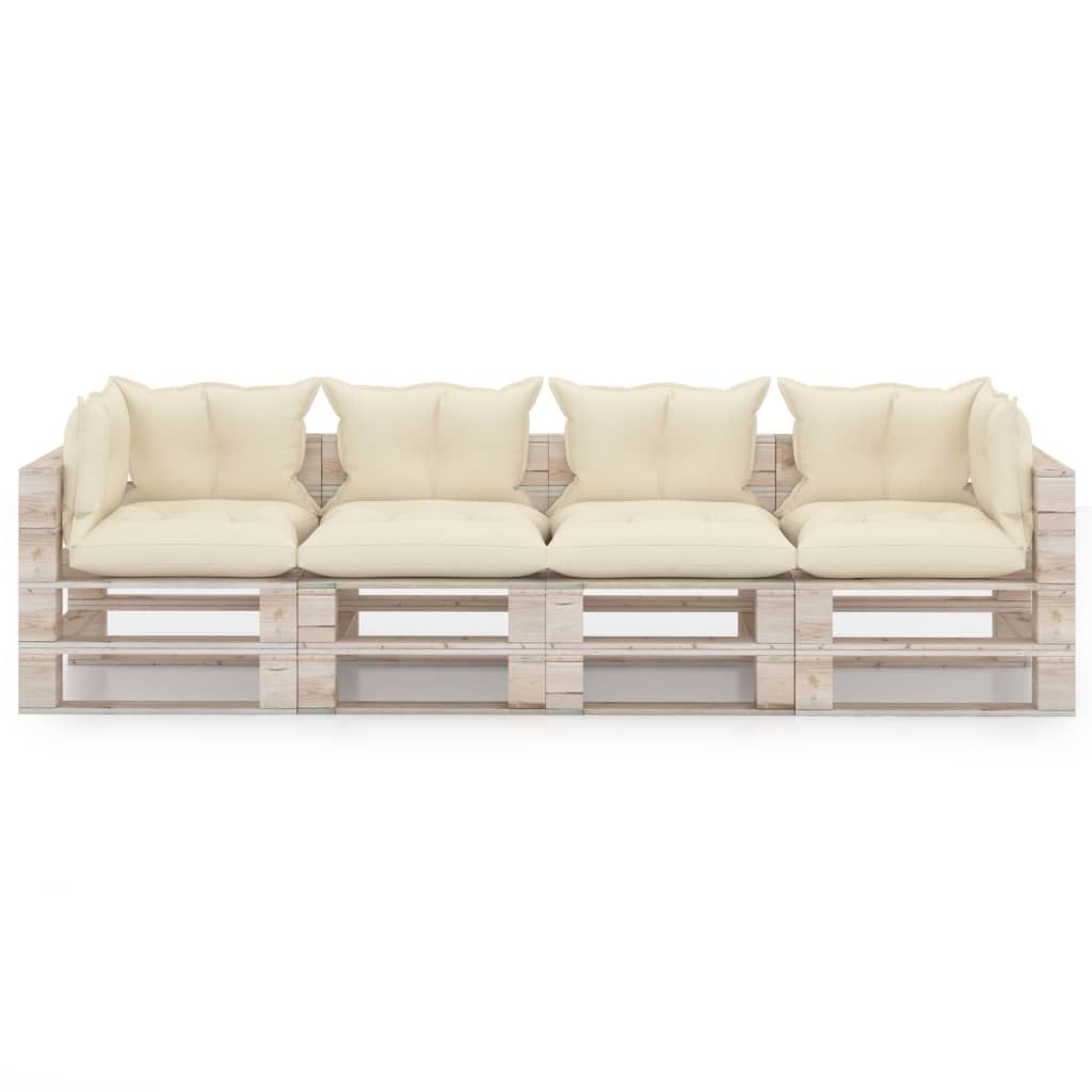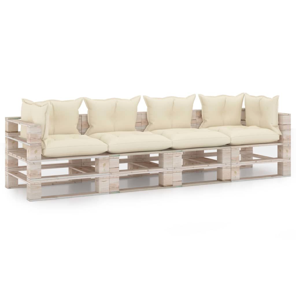 Ogrodowa sofa 4-osobowa z palet, z poduszkami, drewno sosnowe