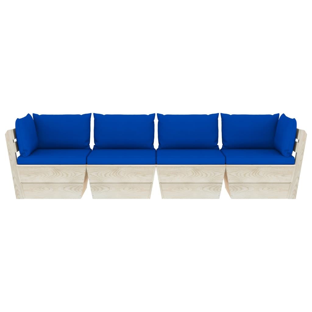 Ogrodowa sofa 4-osobowa z palet, z poduszkami, drewno świerkowe